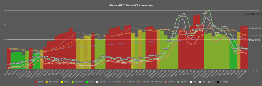 La cantidad de BTC únicos que se mueven de una dirección a otra sigue siendo escasa, lo que ha llevado a la señal NVT a presentar una señal bajista por segundo mes consecutivo. Un repunte en el mismo podría resultar ser un indicador alcista.