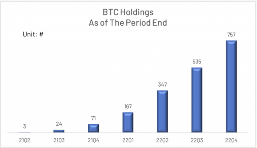 La siguiente captura de pantalla muestra que la empresa ha aumentado sus tenencias de Bitcoin trimestre a trimestre, y la tenencia de Bitcoin en el cuarto trimestre fue de 757.