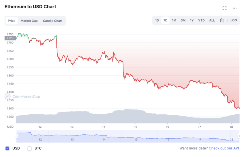 Tras La Fusión de Ethereum, su precio solo ha descendido y ha tenido una caída más severa que Bitcoin, al pasar de 1,739 a 1,298 dólares, que equivale a un desplome de 10,65%, según CoinMarketCap. No obstante, su actualización despertó el interés de Grayscale, quien presentó una declaración de derechos de distribución ante la Comisión de Bolsa y Valores de Estados Unidos sobre tokens Ethereum PoW.