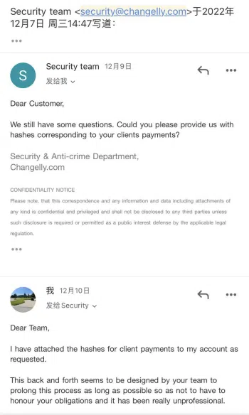 A pesar de proporcionar evidencia de la fuente de los fondos, 0xSea.eth afirma que la plataforma ha estado revisando los fondos. Sin embargo, según los informes, Changelly dejó de responder poco después.