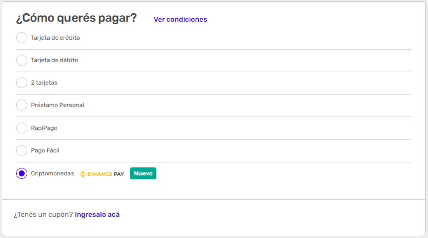 BeInCrypto emuló una comprar y avanzó en los pasos requeridos hasta llegar a las opciones de pago. Efectivamente, desde Argentina ya es posible abonar con criptomonedas. Sin embargo, no es la primera empresa vinculada al turismo que avanza en este terreno.