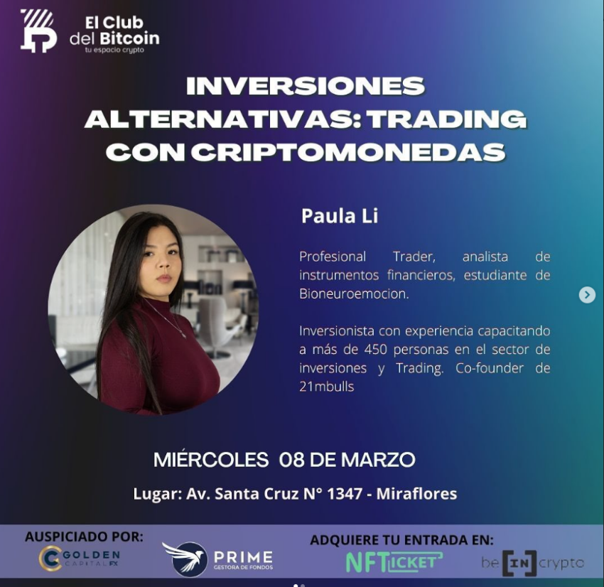 En este evento, Paula Li, una trader profesional y analista de instrumentos financieros en @21MBulls, estará compartiendo las mejores estrategias de trading con criptomonedas.