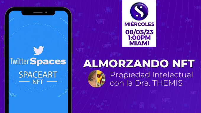 En este evento aprenderás un poco más sobre el complejo mundo de la libertad intelectual con los NFT en el mundo Web3. Junto a la Dra. Themis, especialista en propiedad intelectual, el equipo de @spacesartnft tratará de indagar los límites de nuestros derechos en esta tecnología.