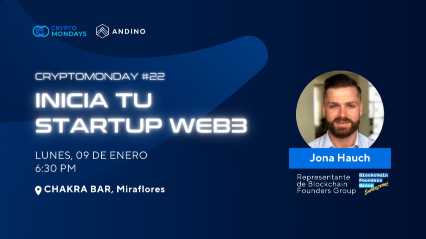 Este lunes se retoman las actividades de #CryptoMonday con @andinodao. En esta primera edición del 2023 los acompaña Jona Hauch, Representante de Blockchain Founders Group quién dará los mejores tips para iniciar un negocio en Web3.