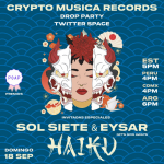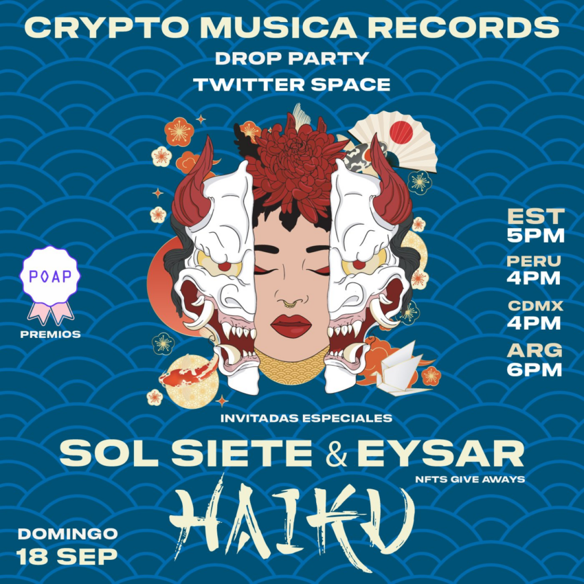 En este space Solsiete & Eysar nos traen su mejor repertorio y también giveaways de NFTs. En este espacio se darán POAPs para todos los asistentes.