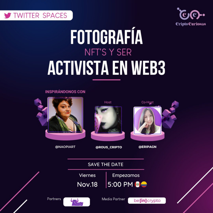 En este space junto a la comunidad de @criptocuriosas aprenderás como el arte ha encontrado nuevas oportunidades de negocio y empoderamiento gracias a los NFT