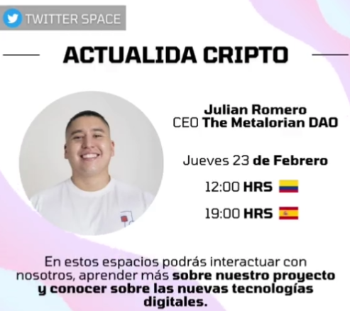 En este evento, Julian Romero estará compartiendo la información más relevante del mundo cripto durante las últimas semanas.