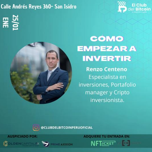 En este evento, Renzo Centeno, especialista en inversiones y gestor de carteras de Golden Capital Fx, compartirá sus mejores consejos para comenzar en este camino y seguir las mejores prácticas.