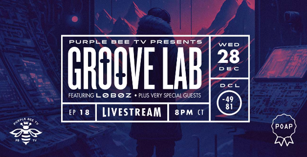 En este evento disfrutarás de la mejor música en el metaverso de Decentraland. Únete a Purple Bee TV en el último episodio de Groove Lab. Esta jam session interactiva, en directo desde su estudio en Volente, TX. Purple Bee es una productora de nuevos medios y estudio de grabación. Son realizadores de conciertos y eventos, han trabajado con Alicia Keys, Coldplay, The Head and the Heart, C3, House of Blues, SiriusXM & más.