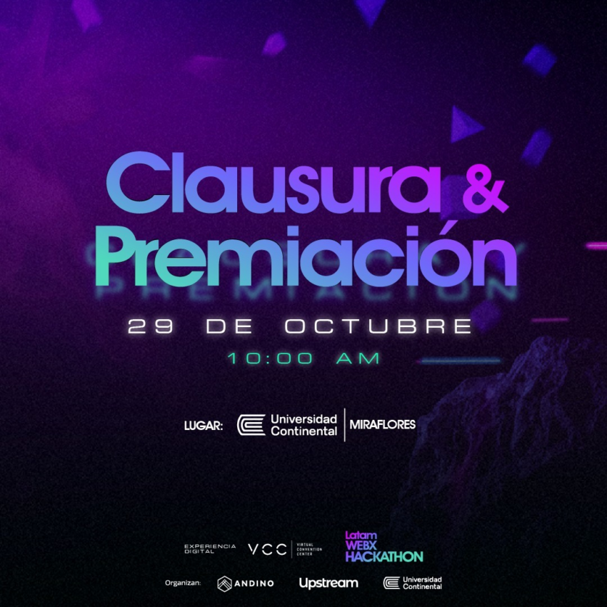 Acompáñanos de forma presencial o virtual en el último día de este grandioso evento donde veremos la presentación final de las ideas más creativas de cada equipo participante, así como los retos finales y la premiación a los ganadores del Latam WEBX HACKATHON