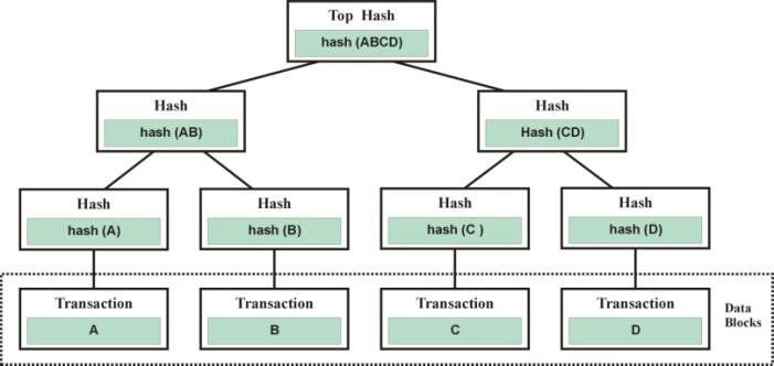 Los árboles de Merkle son una estructura de datos que en Bitcoin se utilizan para crear un historial de transacciones que cada nodo revisa con el fin de validar el origen de unas monedas en específico.