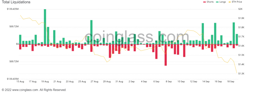 Las liquidaciones totales de ETH superan los 165 millones de dólares