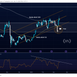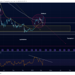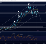 Como se aprecia en el gráfico, las medias móviles en tiempo diario continúan paralelas, y la divergencia bajista marcada en el RSI son una señal clara de distribución y no de acumulación.
