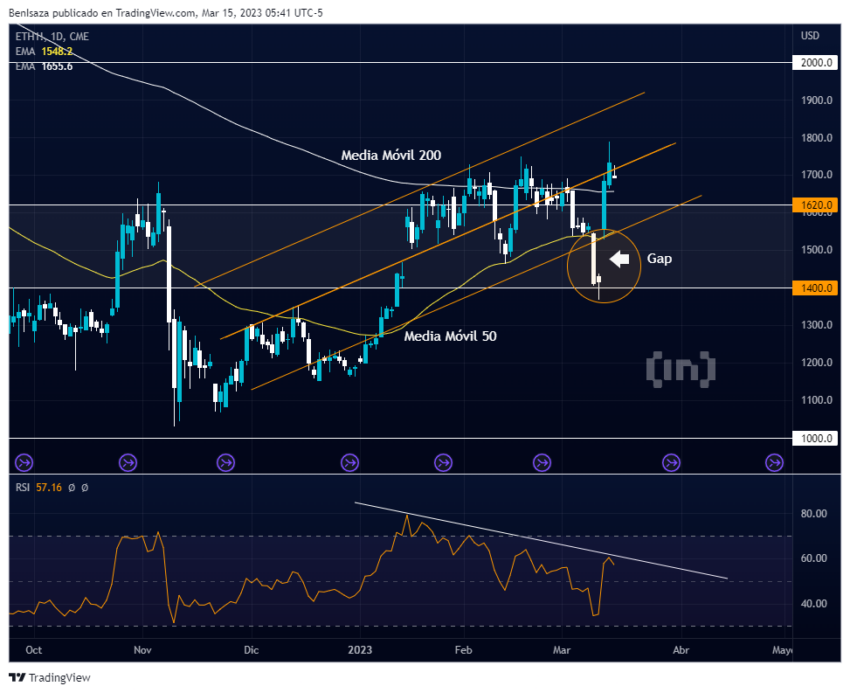 Ethereum creó un gap en el nivel de los 1,400 dólares durante su último impulso alcista.