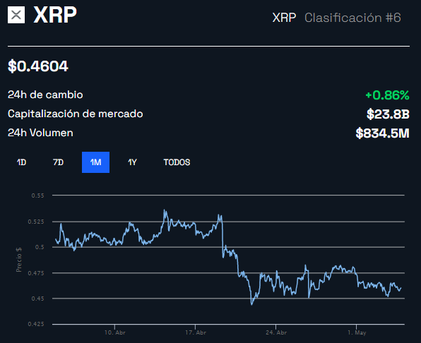 El precio de XRP se ha mantenido estable a lo largo de la jornada y cotiza actualmente en 0.460 dólares, según los datos de BeInCrypto.