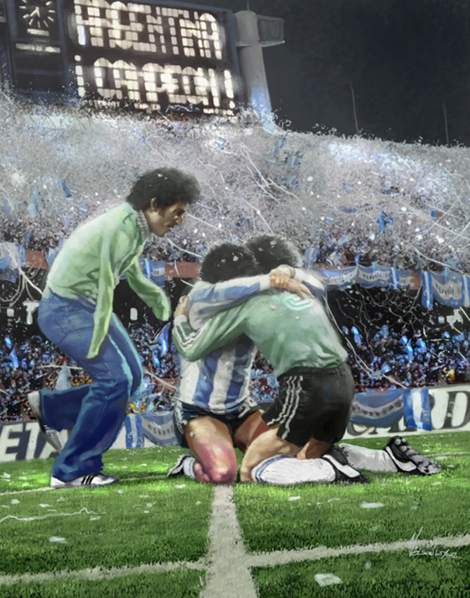 La idea fue poner sobre nuevas tecnologías los momentos más icónicos del futbol argentino. Desde la Mano de Dios de Maradona al llamado Gol del Siglo, pasando por el Abrazo del Alma de Fillol y Tarantini o alguna obtención de la Copa Libertadores.