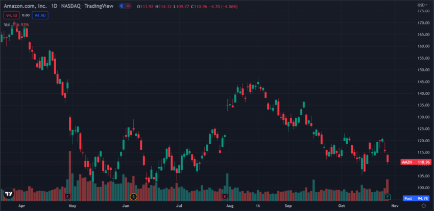 El precio de las acciones de Amazon cayó un 4.06% a 110.96 dólares.