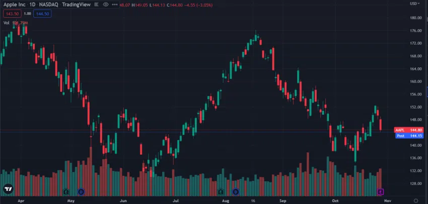 Las acciones de Apple, con sede en Cupertino, cerraron el día de trading con un descenso del 3% a 144,80 dólares.