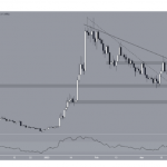 El hecho de que el RSI esté en 50, señal de una tendencia neutral, no ayuda a determinar la línea correcta.