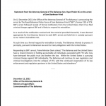 En su comunicado oficial, la Office of the Attorney General & Ministry of Legal Affairs de las Bahamas, explicó que lo siguiente: