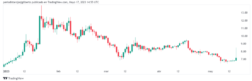 Evolución en el precio de AXS este 2023. Fuente: TradingView