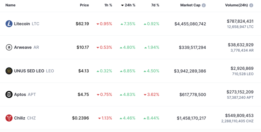 Sin embargo, en el momento de escribir este artículo, Litecoin era el principal ganador del mercado, con un aumento del precio de LTC del 7.24 %.