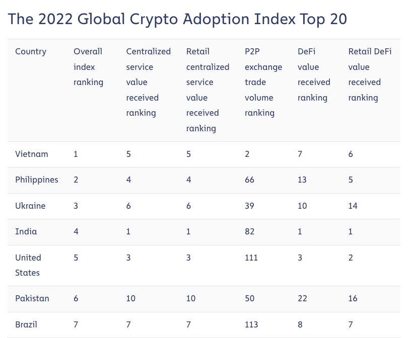 El número de usuarios de criptomonedas de Brasil ha ido en aumento, y el país ocupó el séptimo lugar en el Índice global de adopción de criptomonedas 2022 de Chainalysis. La adopción institucional de las criptomonedas también ha aumentado, con más de 12,000 empresas declarando que poseen criptoactivos a partir de agosto de 2022.