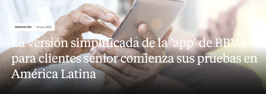 El Banco Bilbao Vizcaya Argentaria (BBVA) realizará pruebas de su app de banca móvil para personas mayores en Latinoamérica. Perú es el primer pais en el que se está comenzado a probar. Unos meses después de que BBVA implantara en España una versión más fácil para el uso de su ‘app’ de banca móvil, la funcionalidad buscará igual aceptación en Latinoamérica. Esto según lo informado por un comunicado oficial del banco.