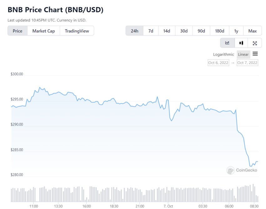 El precio de BNB ha caído un 3,7% cuando se conoció hoy la noticia del exploit.