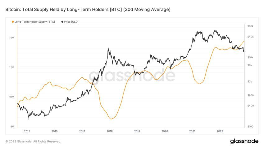 El analista Will Clemente señaló que la métrica del titular a largo plazo de Bitcoin se había disparado casi a un máximo histórico, a pesar de una pérdida masiva en el precio el año pasado.