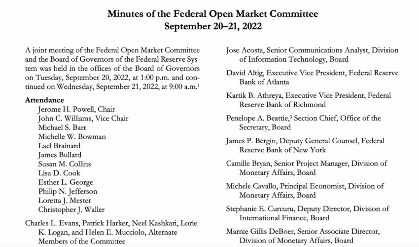Las actas, publicadas el 12 de octubre de 2022, revelan que la Fed continuará con su estrategia de endurecimiento a medida que las cifras de inflación más altas de lo esperado golpean a los hogares de bajos ingresos.