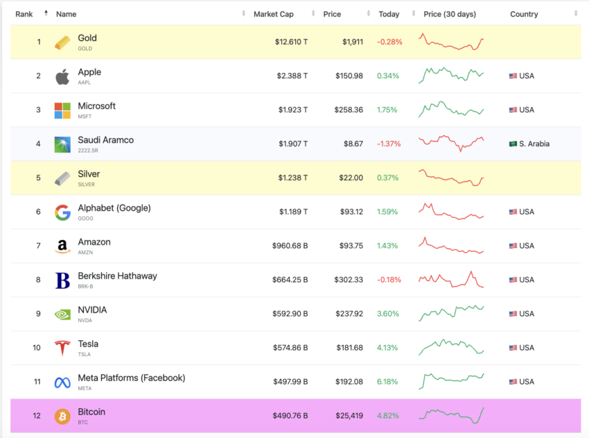 Bitcoin (BTC) ha superado a Meta en capitalización de mercado después de dispararse más del 10% en las últimas 24 horas.