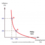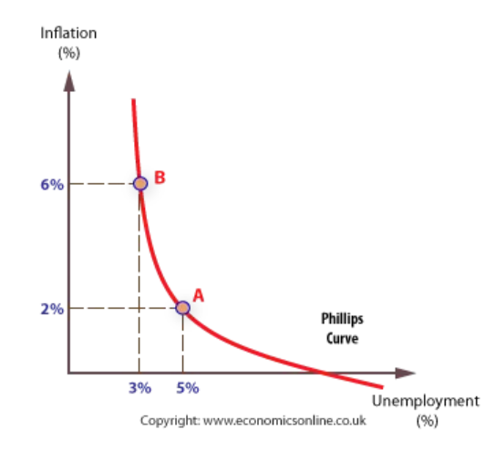 Antes de la pandemia, los responsables de la política monetaria como la Reserva Federal usaban la Curva de Phillips , desarrollada por el economista neozelandés William Phillips, para encontrar la tasa de desempleo óptima para un objetivo de inflación determinado. Según el gráfico, el objetivo de inflación del 2% de la Fed se corresponde con el 5% de desempleo.