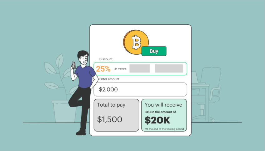 Por ejemplo, si decide comprar 2,000 dólares en Bitcoin, con un descuento del 25%, solo pagará 1,500 dólares por su BTC. El valor total de 2,000 dólares en Bitcoin se acreditará inmediatamente a su saldo, aunque solo podrá retirarlo al final del período de adquisición.