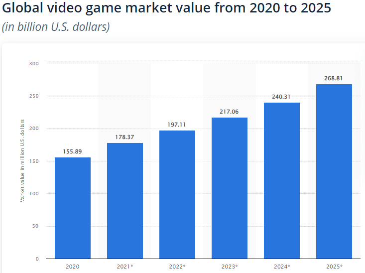 Desde sus orígenes, la industria de los videojuegos ha conseguido revolucionar las costumbres sociales de las personas. Y, de paso, el mercado del entretenimiento. De acuerdo a Statista y Jupiter Research, el mercado mundial de los videojuegos alcanzó los 178,000 millones de dólares en el 2021, y podría alcanzar los 268,800 millones de dólares anuales en el 2025.