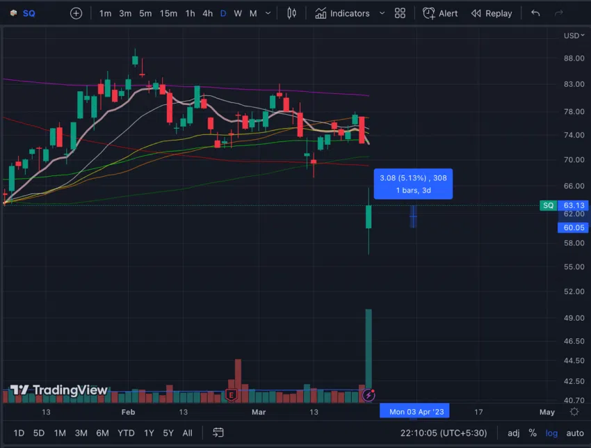 Hindenburg Research tiene una posición corta en las acciones de Block Inc. Tras el informe, las acciones abrieron una brecha del 18%, de 72,66 a 60 dólares. Sin embargo, al momento de escribir, se cotiza a 63.05 dólares, alrededor de 5% por encima del precio de apertura.