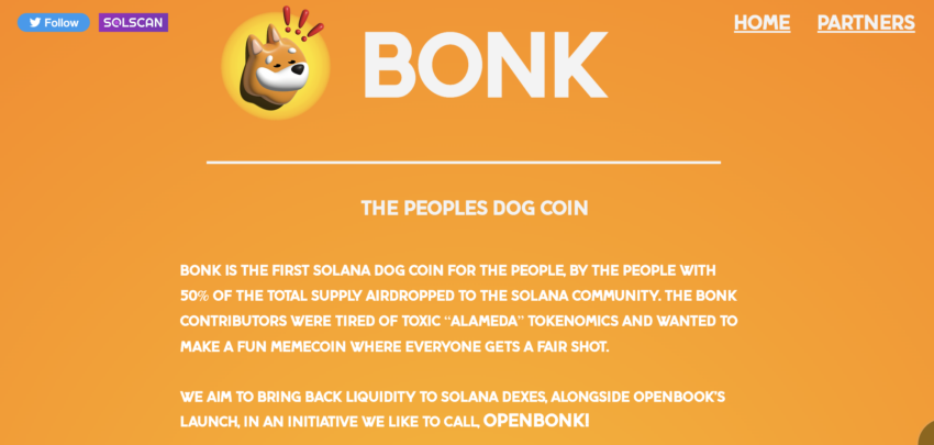 El colapso de FTX afectó más al ecosistema de Solana, siendo Alameda Research uno de los mayores tenedores de Solana. El sitio web de Bonk afirma: