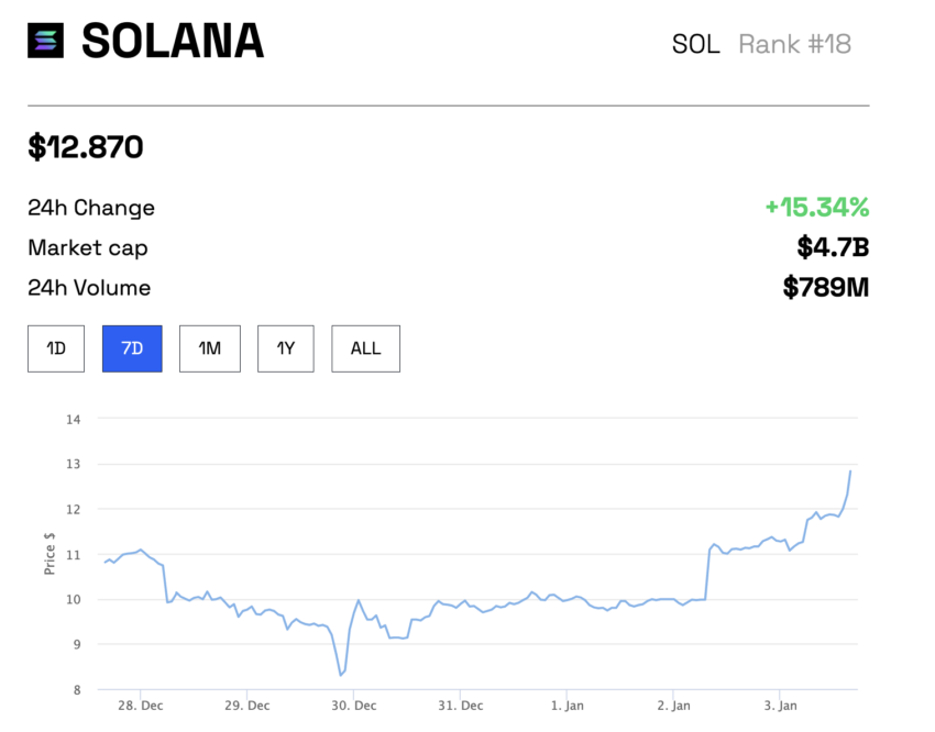 La primera moneda de dog coin de Solana ha despertado el interés de la comunidad en el ecosistema. Si bien el mercado en general se cotiza plano, el precio de Solana se ha disparado más del 63% en una semana desde un mínimo de alrededor de 8 dólares.