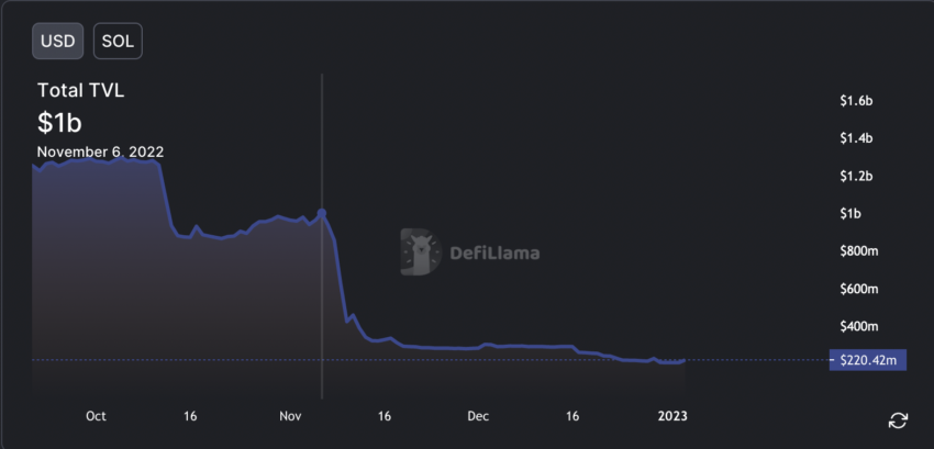 El ecosistema de Solana tenía un TVL de mil millones de dólares, pero debido a las consecuencias de FTX, actualmente se encuentra en casi 200 millones de dólares.