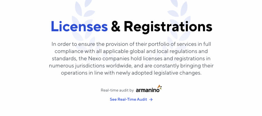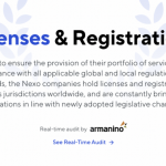 Según el sitio web de Nexo, la empresa posee diferentes licencias en diferentes estados de Estados Unidos, incluidas las licencias de Transmisor de dinero, Ley de financiamiento, Prestamista de dinero y Préstamo supervisado. Sin embargo, un examen más detenido revela que las licencias no guardan relación con la oferta de valores.