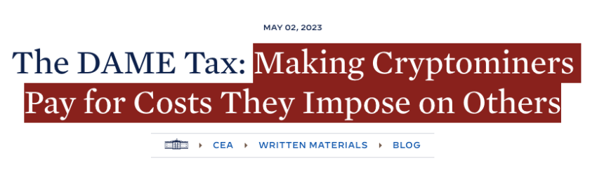 En el enmarcado del post del blog de la Casa Blanca se introduce la razón el ángulo de la administración Biden para este impuesto: “Hacer pagar a los criptomineros los costes que imponen a los demás”