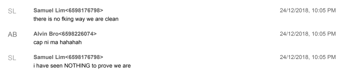 En los chats internos de Binance, Lin y Alvin se burlaban del cumplimiento de la empresa. La captura de pantalla a continuación muestra a Lim, el exlíder de cumplimiento, diciendo que no tiene “nada que probar” que Binance esté limpio.