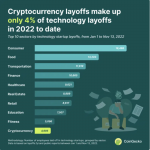 Según un informe de CoinGecko publicado el 14 de noviembre, el sector de las criptomonedas registró 4,695 despidos, que representan el 4% de toda la industria tecnológica.