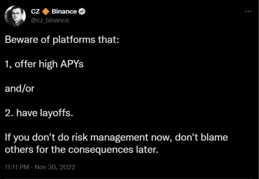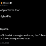 Changpeng Zhao (CZ), el CEO de Binance, parece dar un golpe indirecto a Kraken debido a los despidos. Advirtió a los usuarios que tengan cuidado con los exchanges que ofrecen un APY alto y tienen despidos.