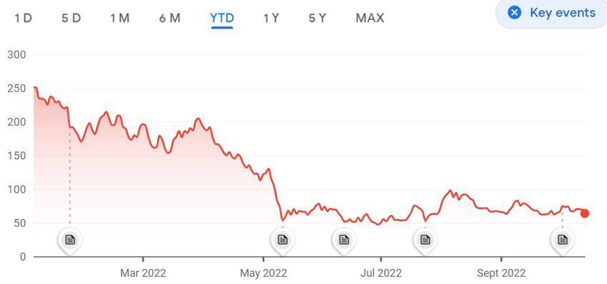 El precio de las acciones de Coinbase cayó 8%, y el precio de las acciones de COIN se cotiza a 63,59 dólares. El precio de las acciones de COIN ha bajado un 74% en las métricas del año hasta la fecha. Más importante aún, dos instituciones financieras líderes, JP Morgan y Goldman Sachs, bajaron sus calificaciones para vender.