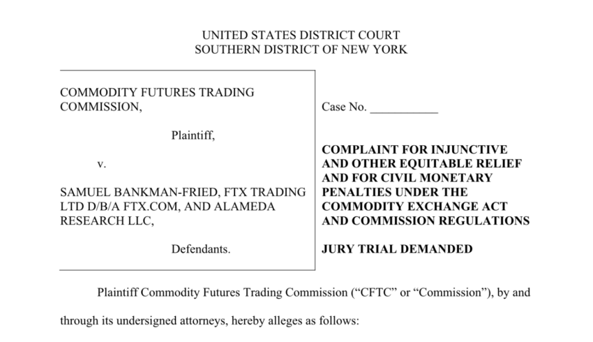 La Comisión de Comercio de Futuros de Productos Básicos (CFTC) de Estados Unidos oficializó su presentación de cargos de fraude contra el ex CEO de FTX, Sam Bankman-Fried, bajo el argumento que los depósitos y fondos de clientes fueron apropiados por Alameda Research.