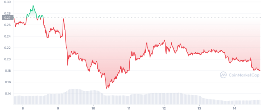 En CoinMarketCap, la criptomoneda nativa de Chiliz se negociaba a 0,18 dólares. El token ha perdido más del 30% desde que alcanzó un máximo local de 0,275 dólares a principios de la semana pasada.