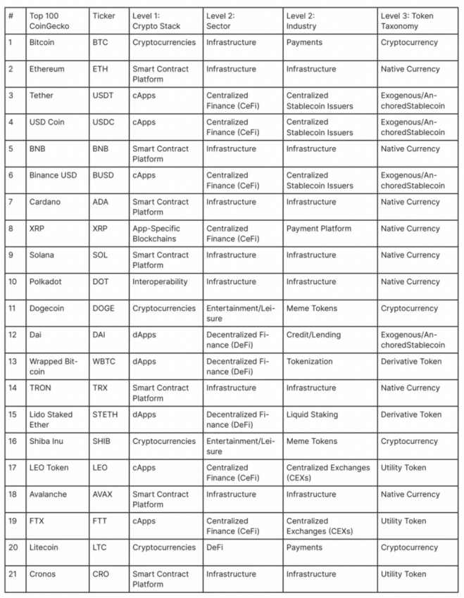 Pero como la industria cripto es relativamente nueva, un principiante se confunde con varias terminologías y jergas. Palabras como descentralización, solución de escalado de capa 1, metaverso y NFT pueden abrumar a un principiante. Por lo tanto, CoinGecko y 21Shares colaboraron para preparar el informe GCCS para simplificar la industria al categorizar mejor los criptoactivos.