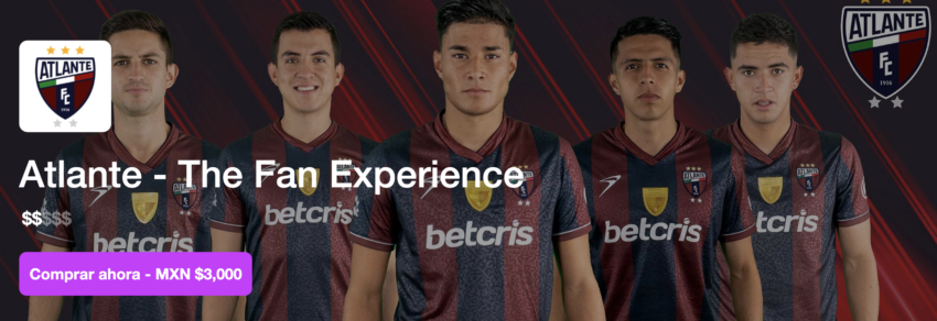“¡Ya está disponible The Fan Experience Drop de @atlantefc! Sé uno de los 60 aficionados en tener tu NFT exclusivo y vivir inolvidables experiencias. Link en bio. // Atlante The Fan Experience Drop is now available!”.