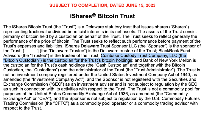 Para el ETF de Bitcoin de BlackRock, el mayor gestor del mundo ha seleccionado a Coinbase para el servicio de custodio de criptomonedas.